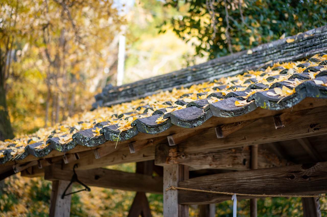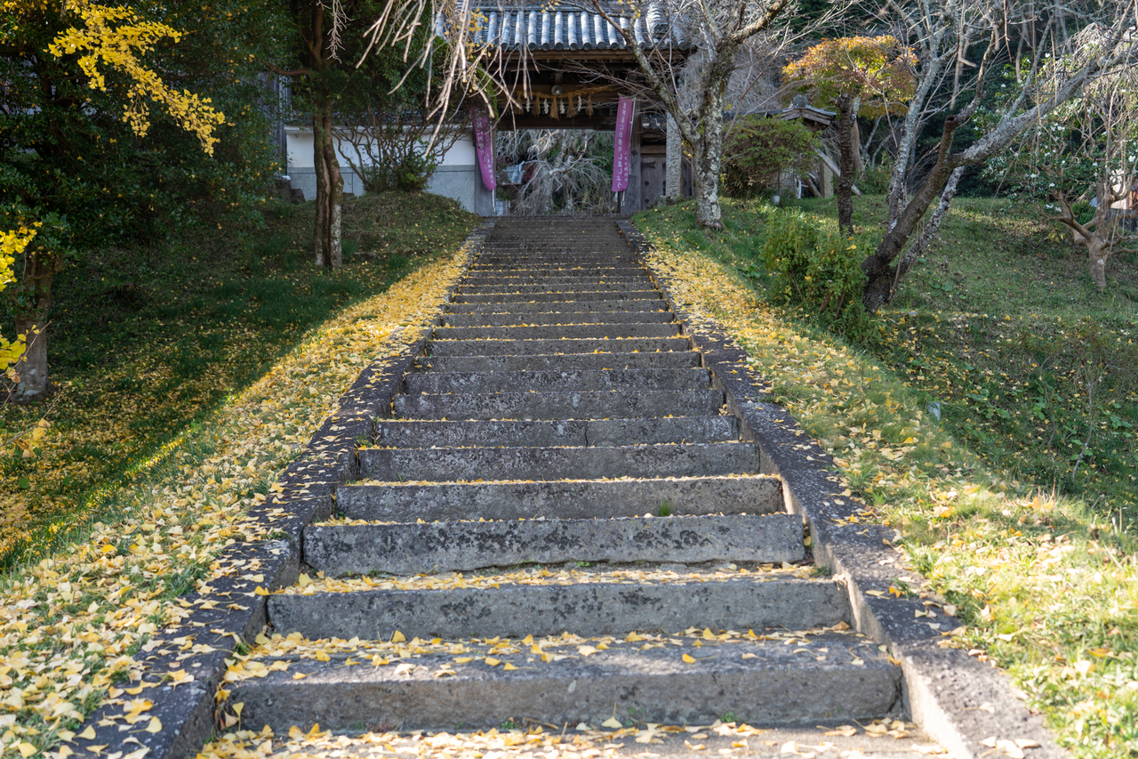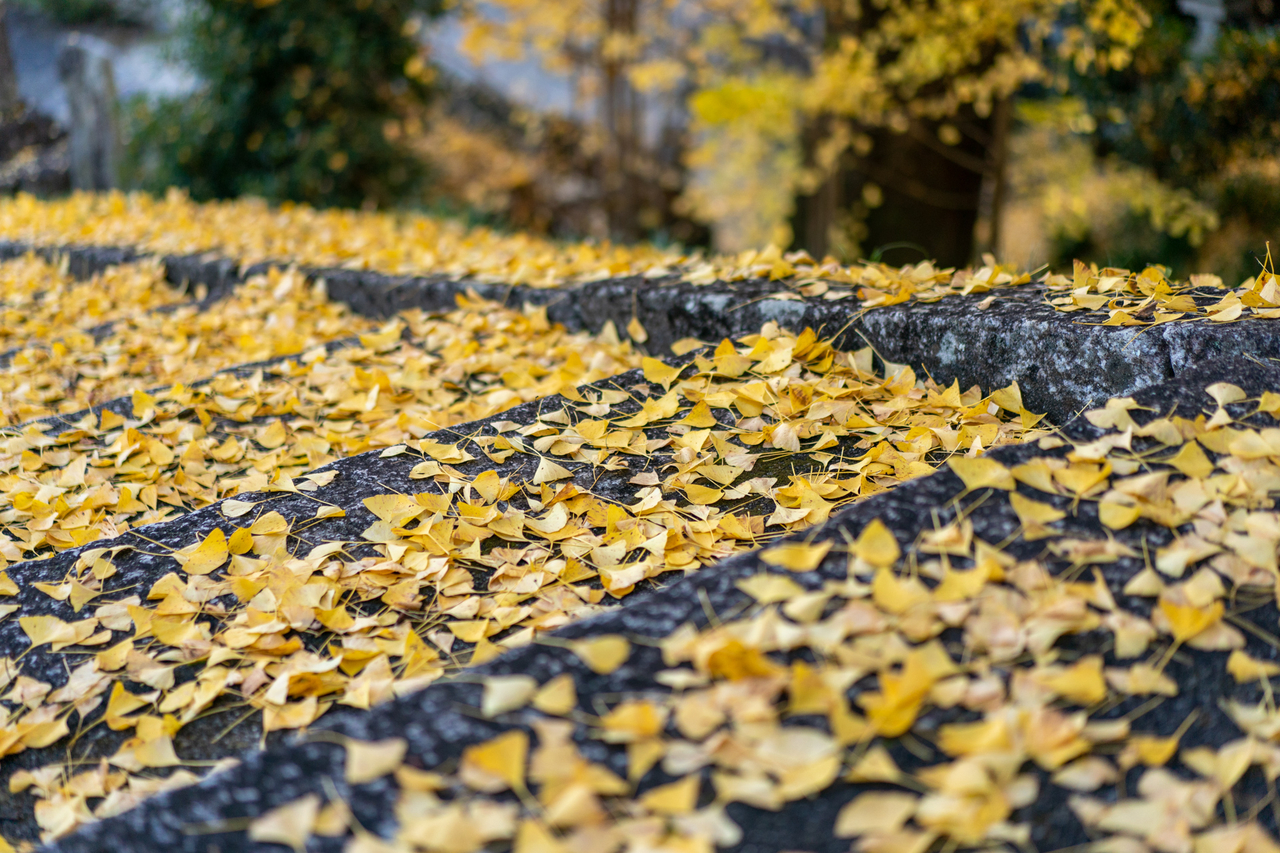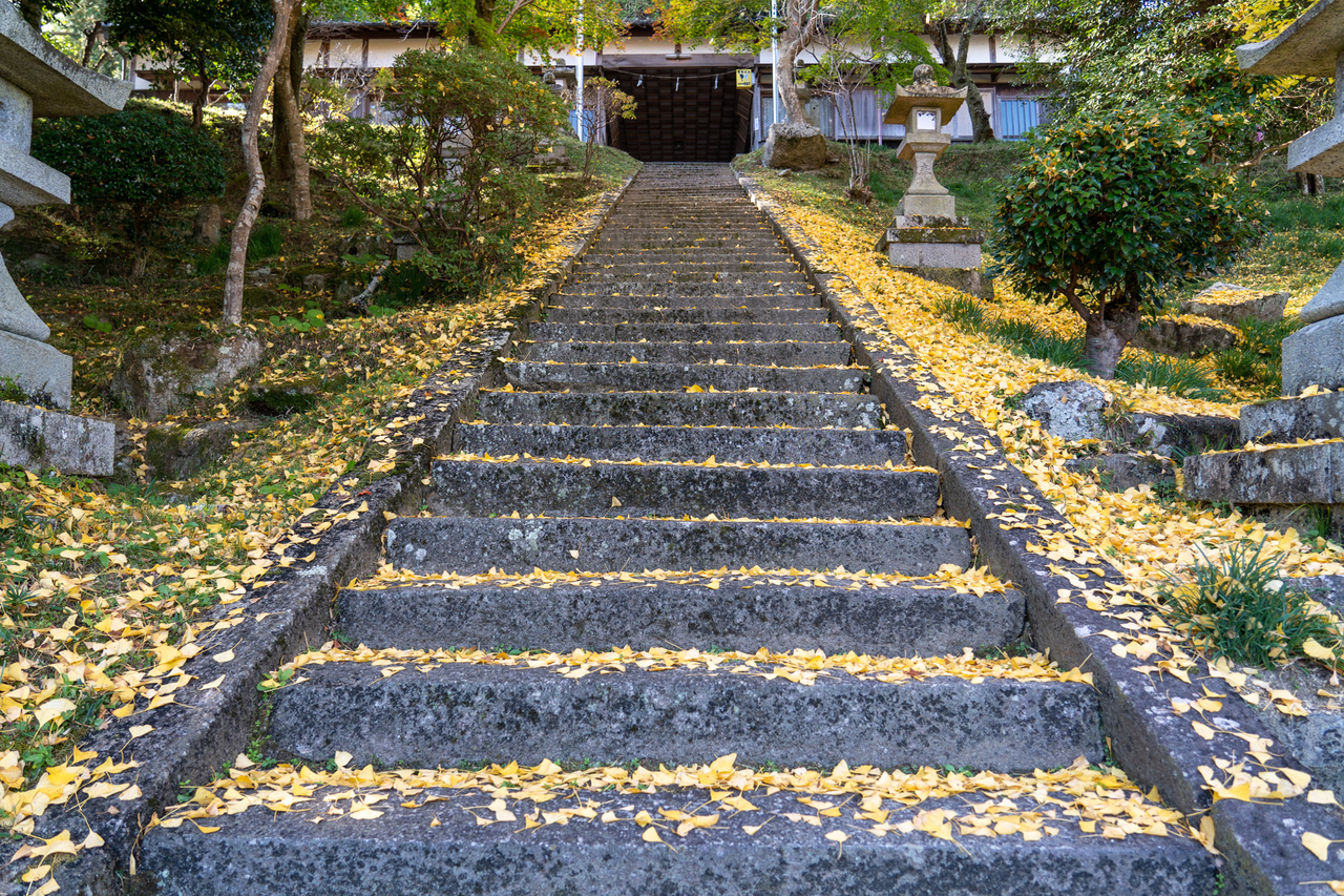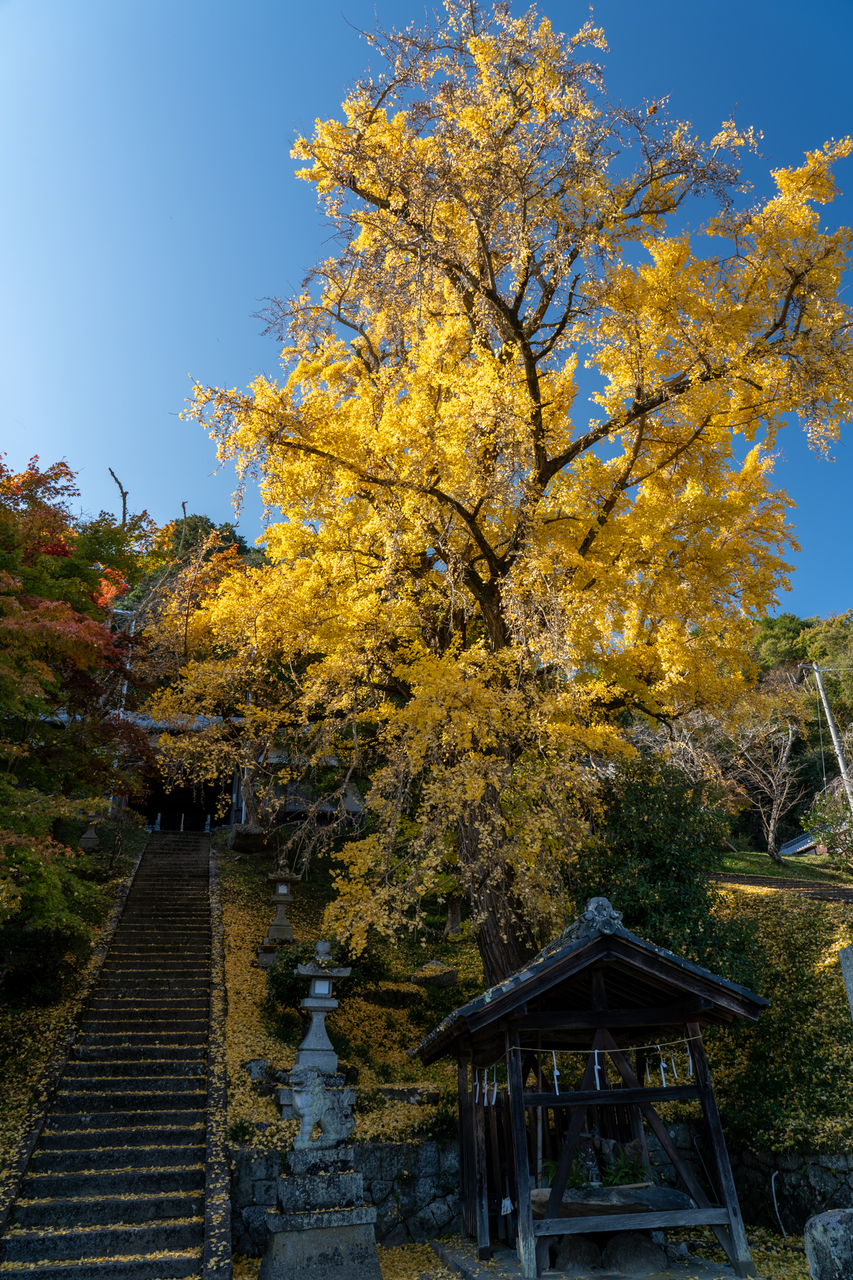 境内へ続く階段横に巨大な銀杏の木がありハラハラ落ちる姿がチョベリグです