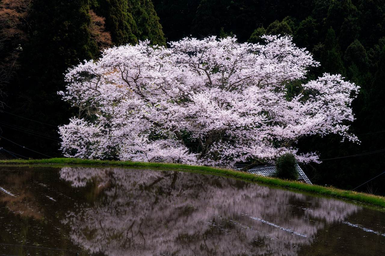 地元の人が好意で田植え前の水田に水を張ってくれている。去年一昨年はコロナで