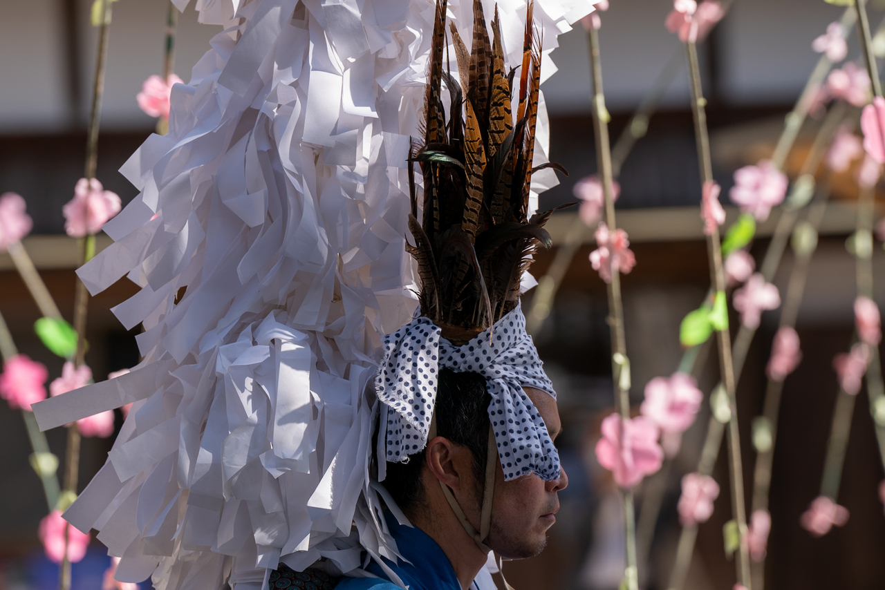 春らしいピンク色の神事でした。踊りのあとは餅まきがあります