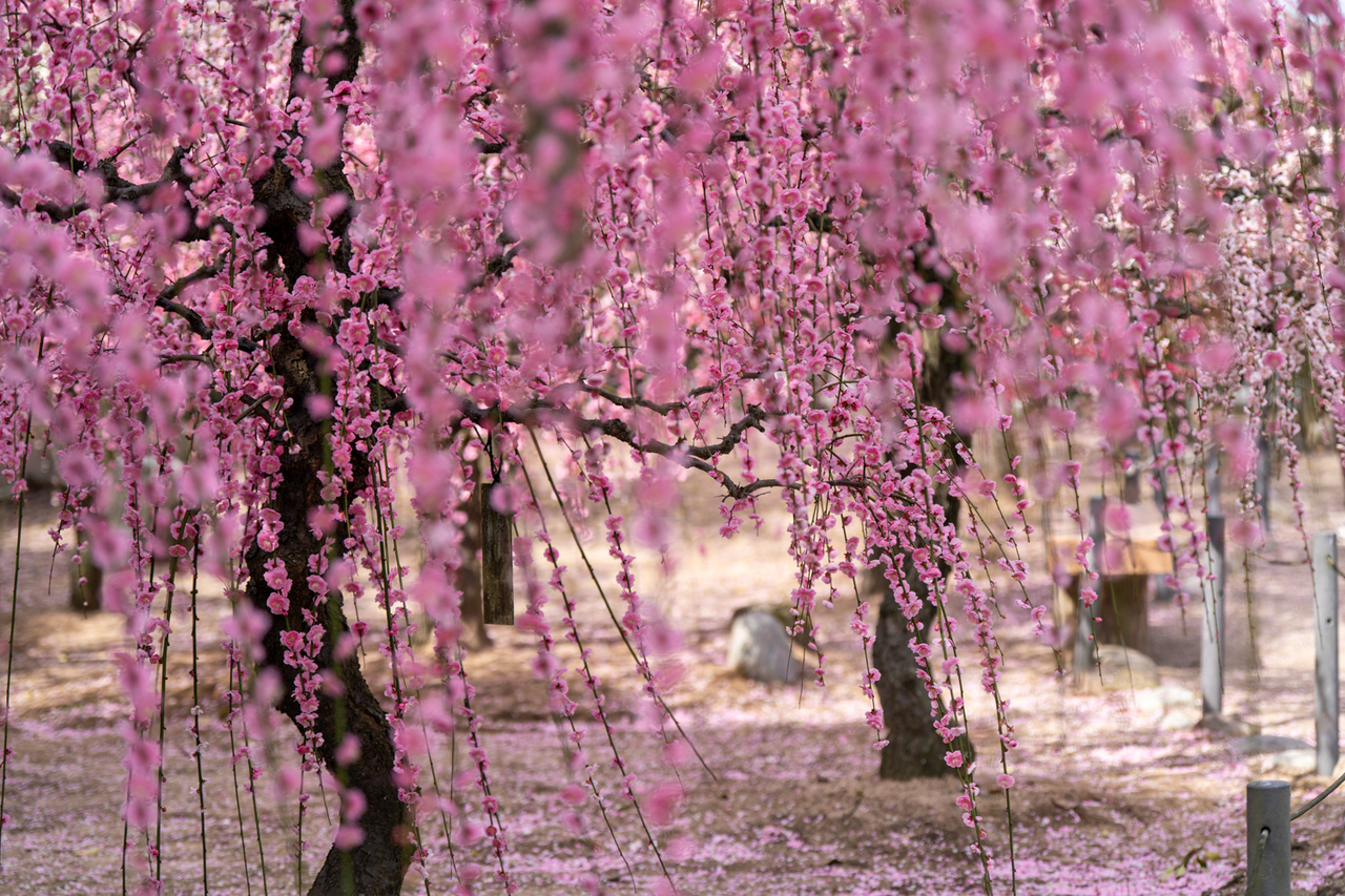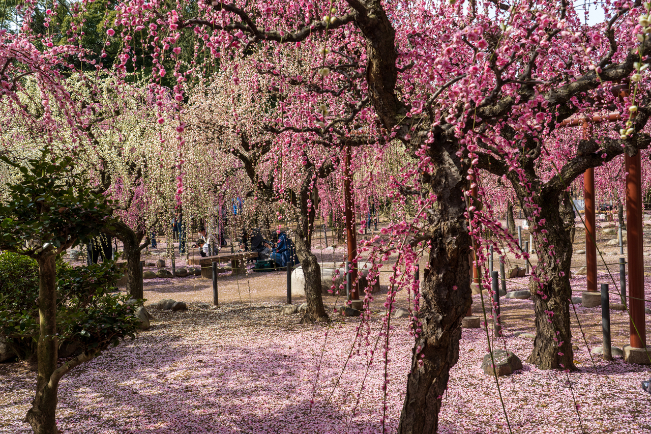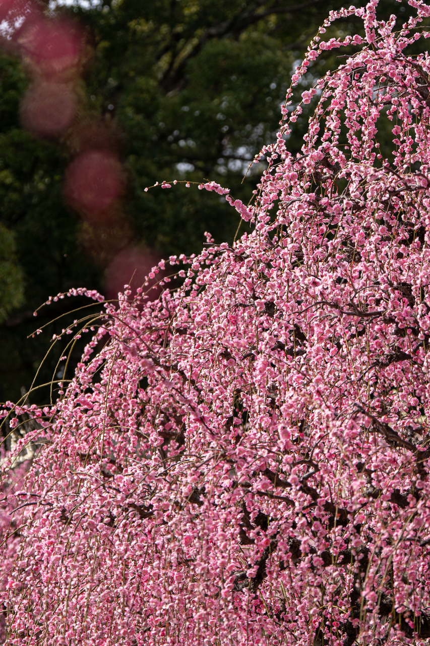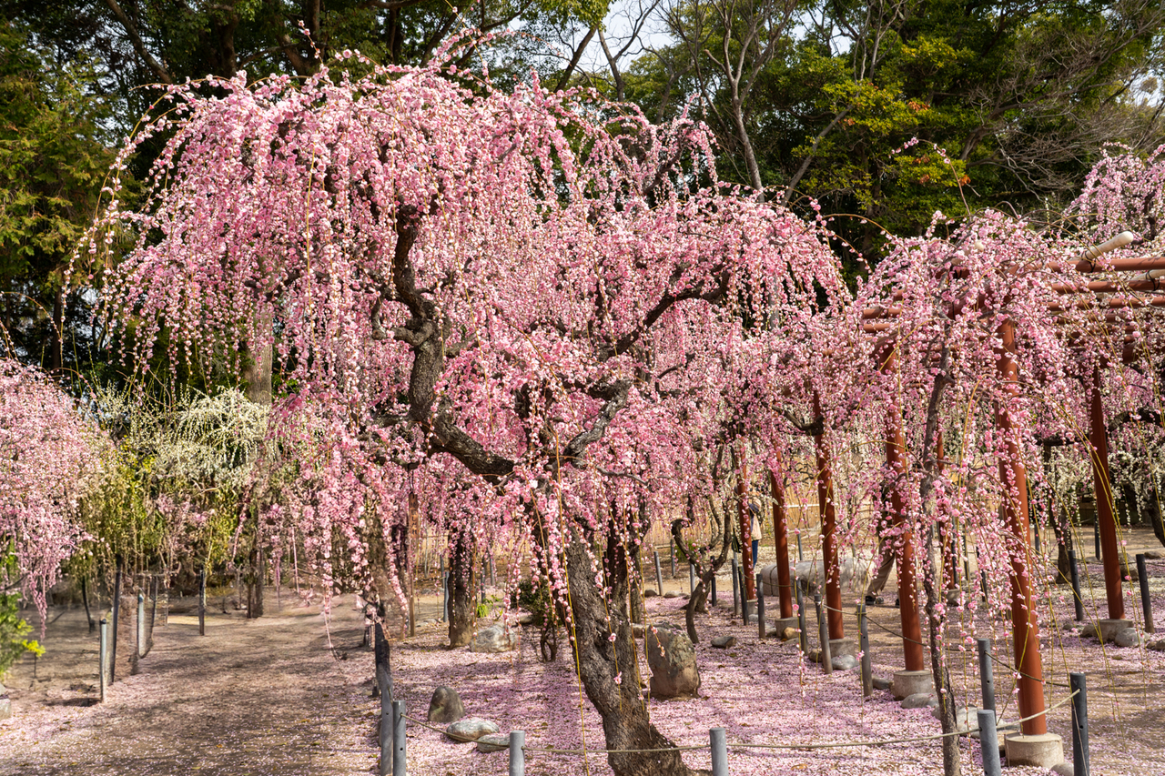 こじんまりした梅園に高密度で梅が咲き誇り最高です。メジロは朝の食事を終えると