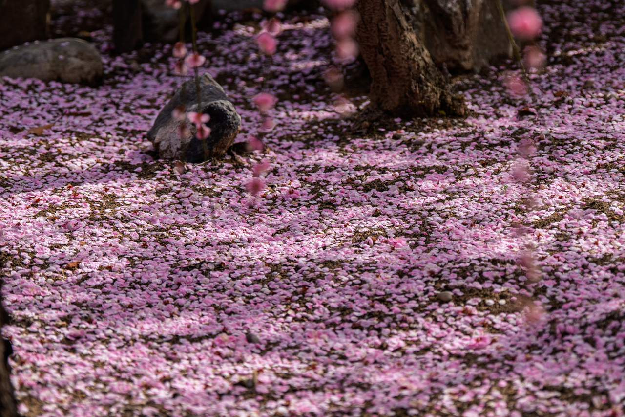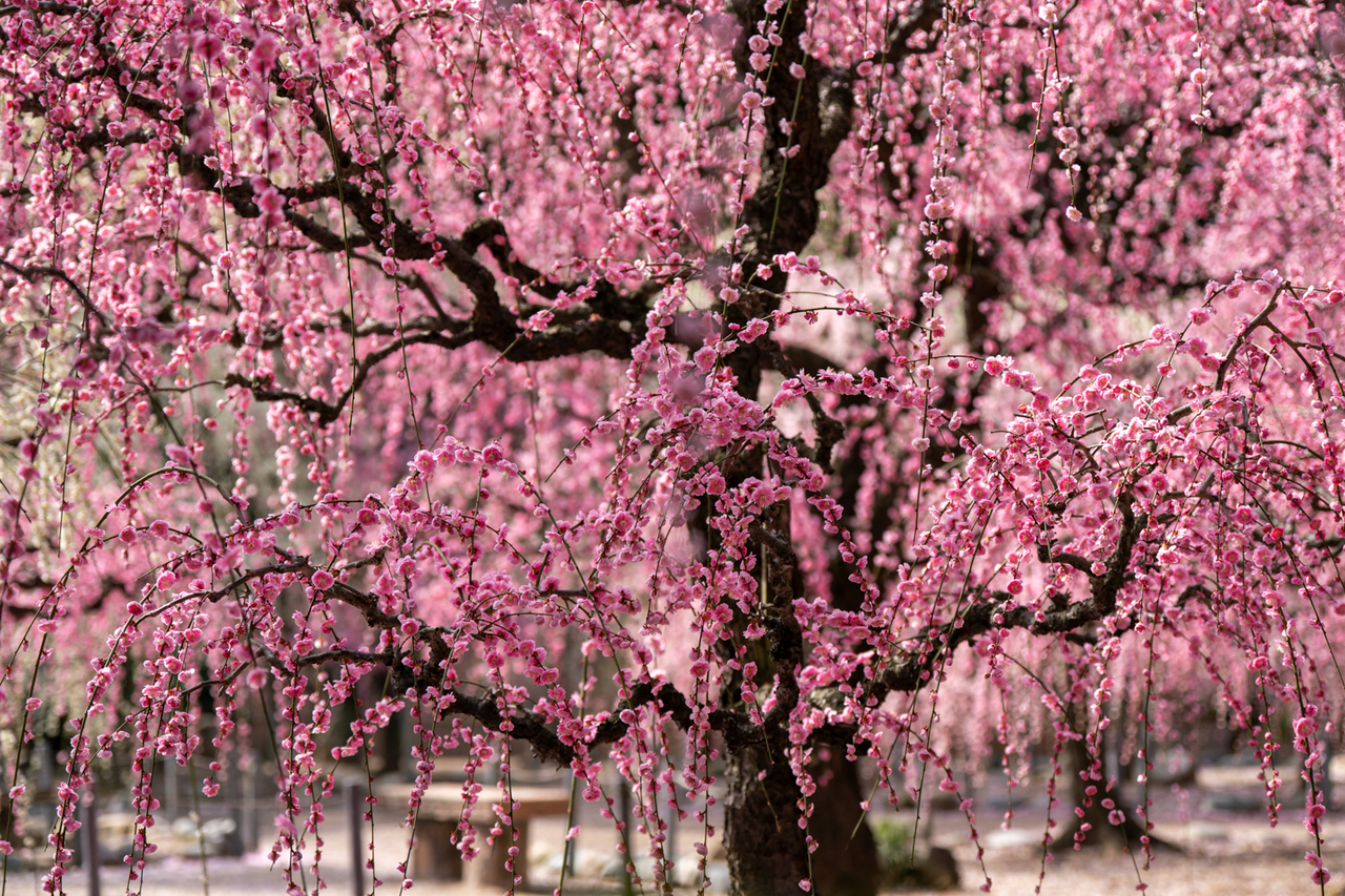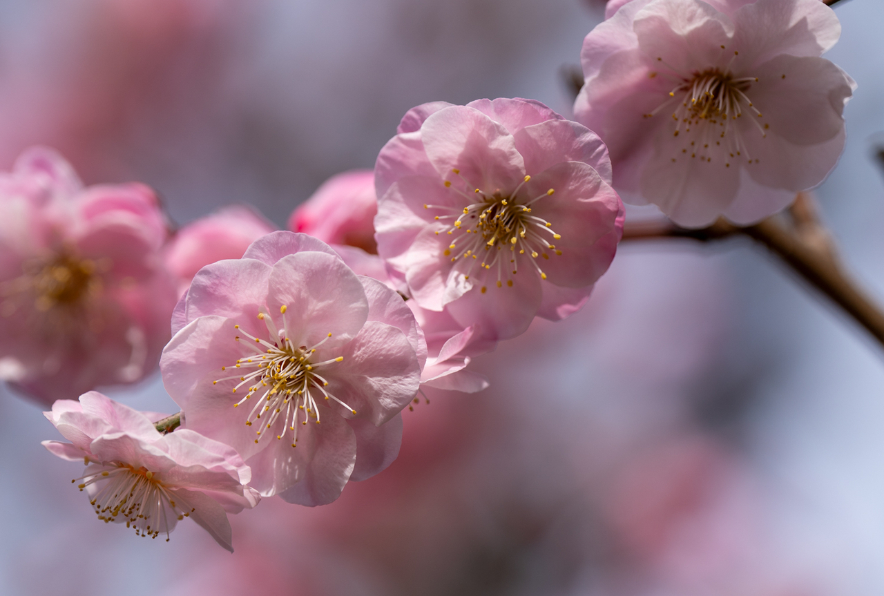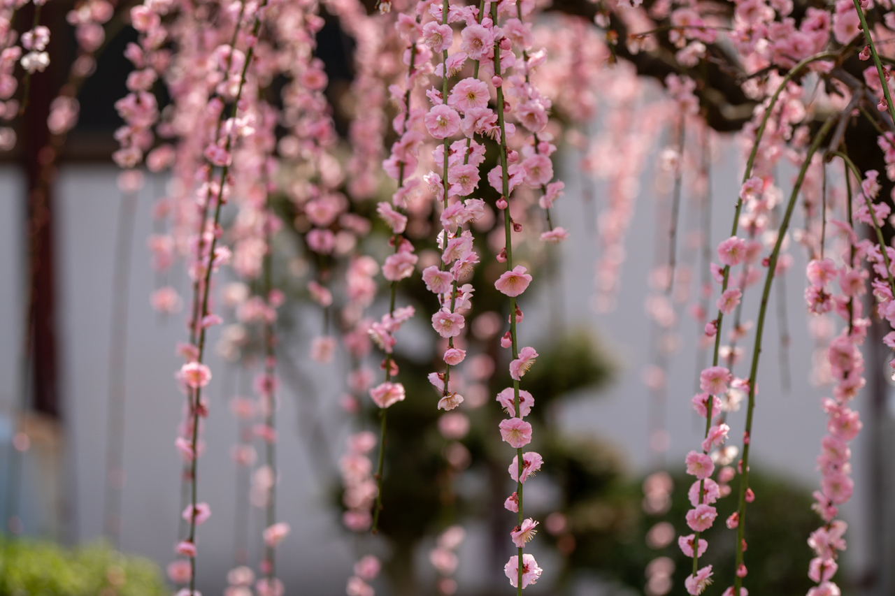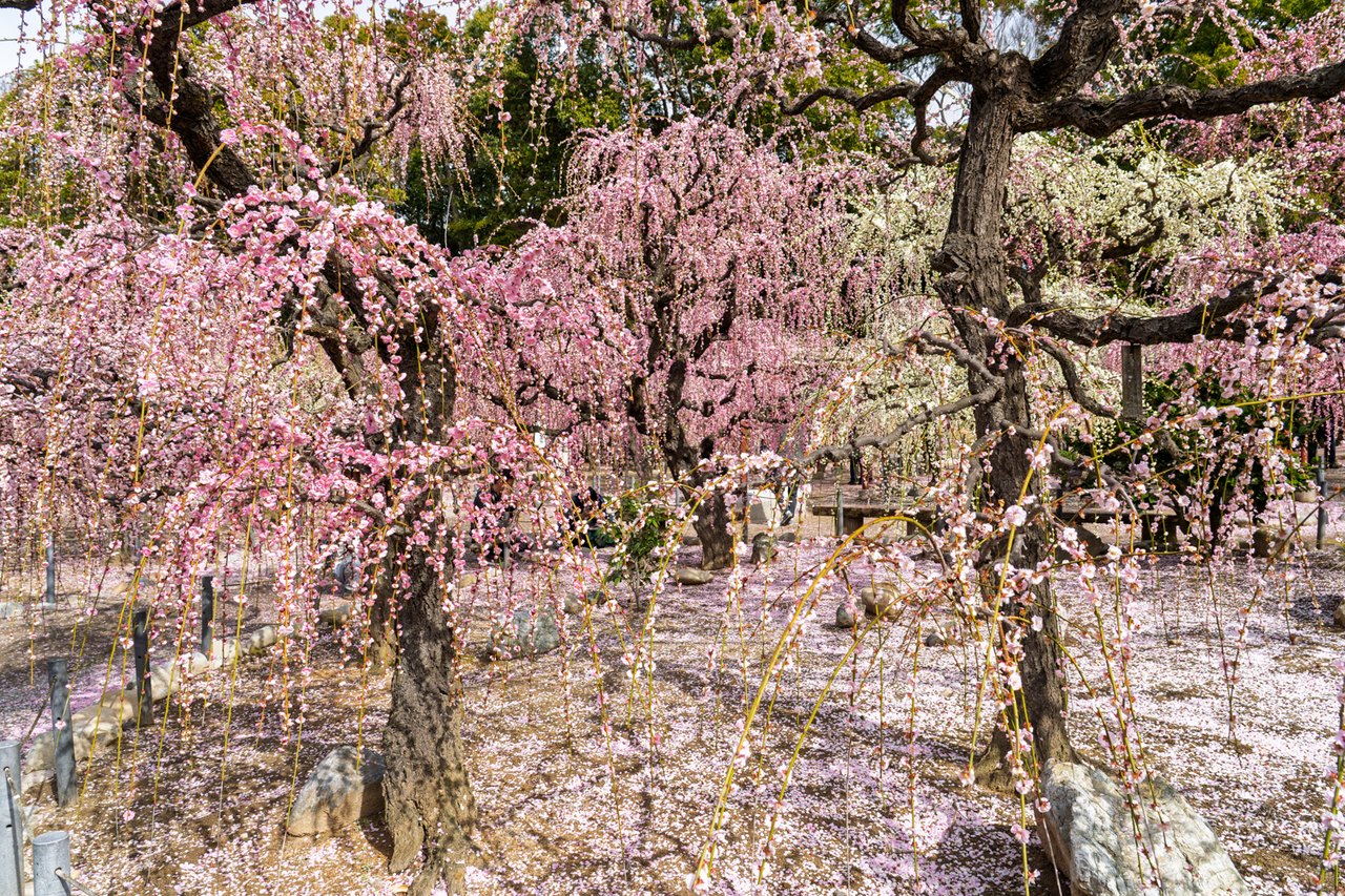 こじんまりした梅園に高密度で梅が咲き誇り最高です。メジロは朝の食事を終えると